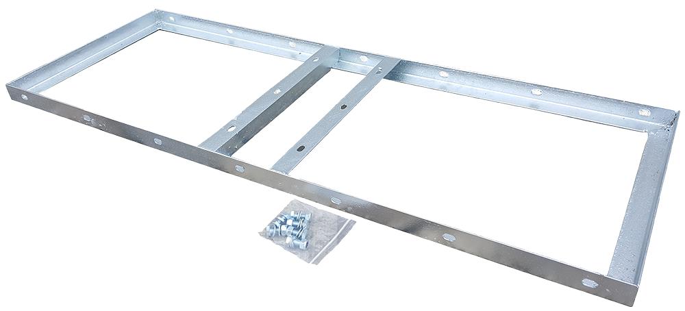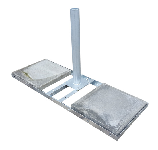 It can be ballasted using 450 x 450 mil paving slaps or concrete blocks and comes complete with 4 plated nuts and bolts for attaching the mast mount. The frame dimensions are 132 x 48cm